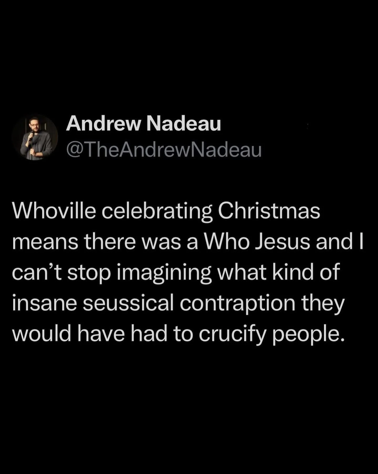 What if Jesus was never crucified and instead cursed Judas into being the Grinch’s ancestor and the Who’s are Jesus’ descendants and that’s why the Grinch hates Christmas so much. The movie is just about the descendants of both bloodlines learning to forgive each other.