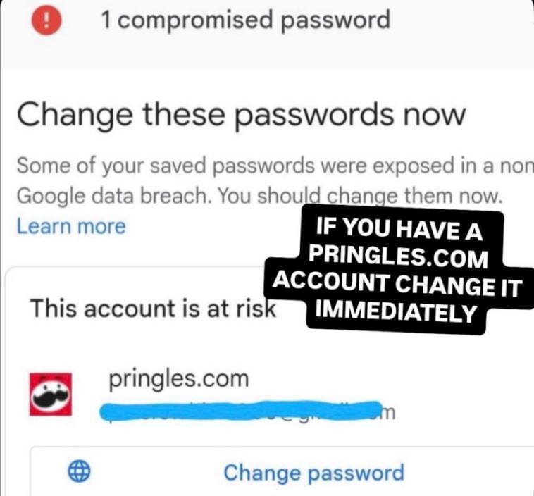 the image is captioned: “IF YOU HAVE A PRINGLES.COM ACCOUNT CHANGE IT IMMEDIATELY”