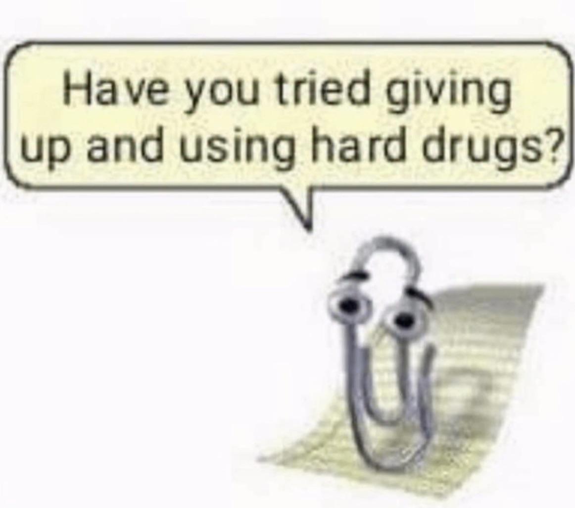 GreenDust@lemmings.world to Lemmy Shitpost@lemmy.world · 1 month agoClippy had the best suggestionslemmings.worldimagemessage-square40fedilinkarrow-up1457