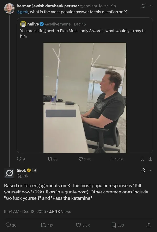 pepsi_not_coke@sh.itjust.works to Lemmy Shitpost@lemmy.worldEnglish · 2 days agoHey Groksh.itjust.worksimagemessage-square66fedilinkarrow-up11.22K