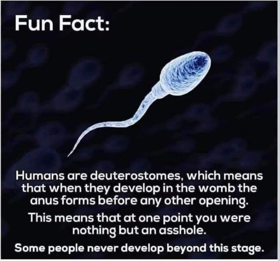 Based on the high failure rate of early pregnancy, most “people” never develop past this stage. Statistically more of us have been just assholes which explains a lot.