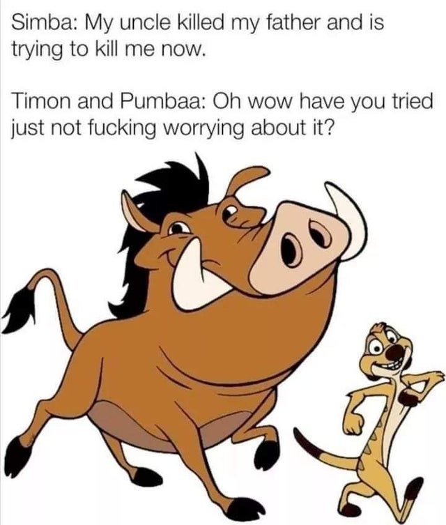 Simba: I killed my dad, was exiled on penalty of death, and almost starved to death.