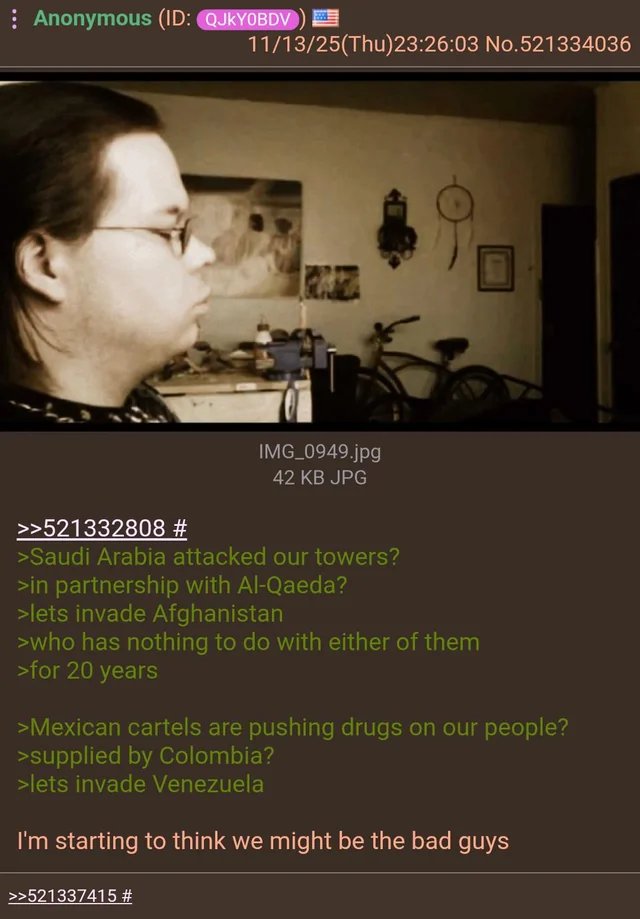 🍹Early to RISA 🧉@sh.itjust.worksM to Greentext@sh.itjust.works · 3 days agoAnon questions some decisionssh.itjust.worksimagemessage-square78fedilinkarrow-up1924