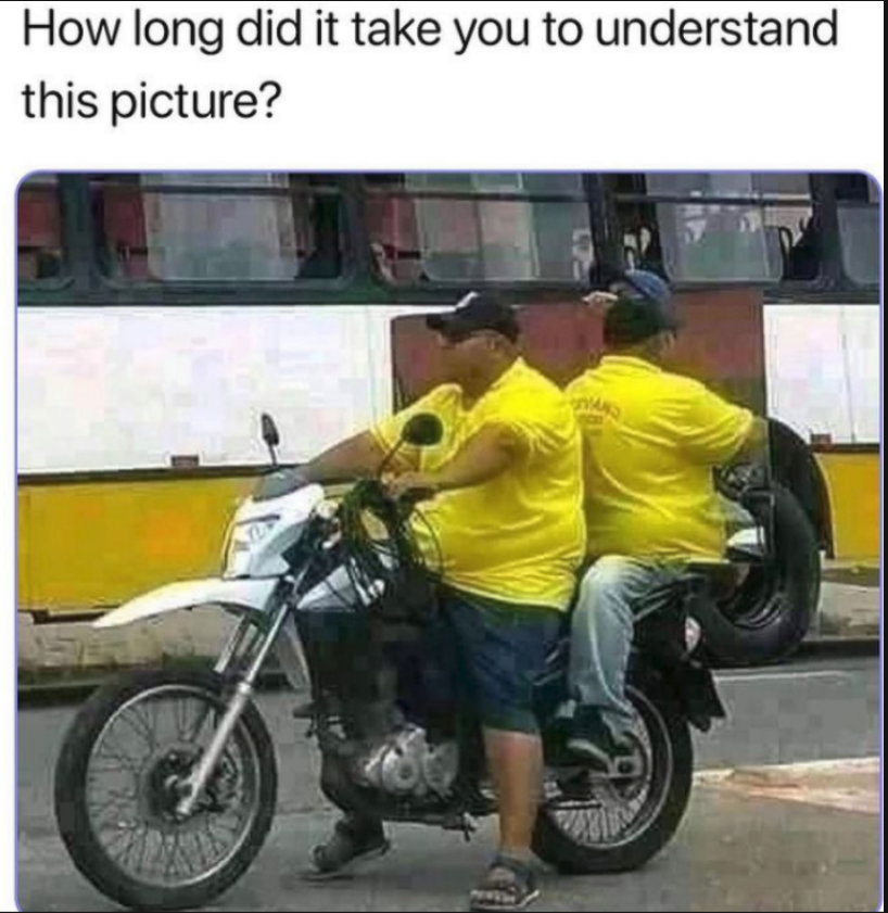 About a minute to realise >!bro on the back is carrying a big mirror!<