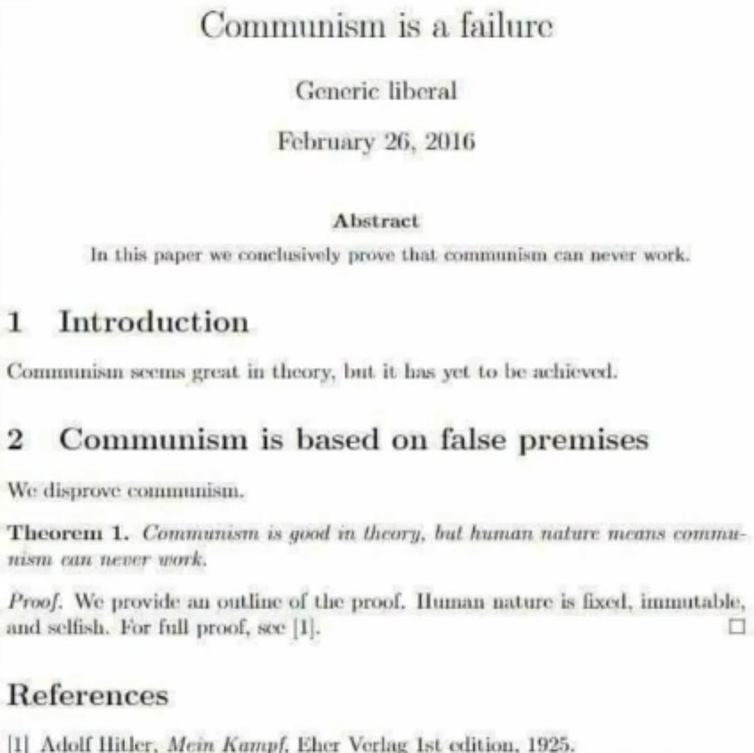 The New York Times will pick this up with a title “academic definitively disproves communism”.