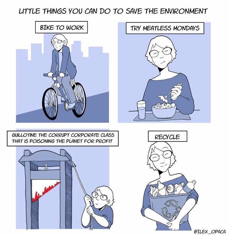 I mean really??? Just NOT eat meat every monday??? No thanks. If anything I’d rather have cannibal mondays. Where we eat the corpses of all the billionaires we’ll be killing. No sense in letting that meat go to waste!