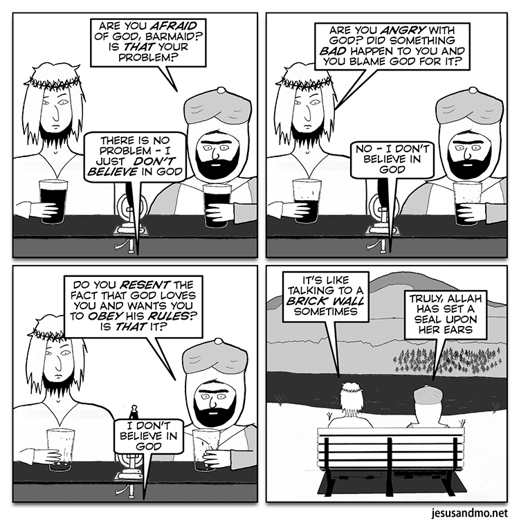 spaceghoti@lemmy.oneM to Atheism@lemmy.mlEnglish · 1 year agoTalking to a brick wall | Jesus and Mowww.jesusandmo.netimagemessage-square0fedilinkarrow-up11file-text