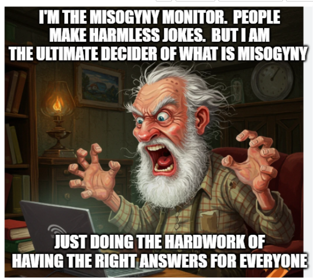 Edit: Ok, so the “harmless jokes” OP is ranting about include joking about rape like in this post by them: https://lemmy.world/post/41014361