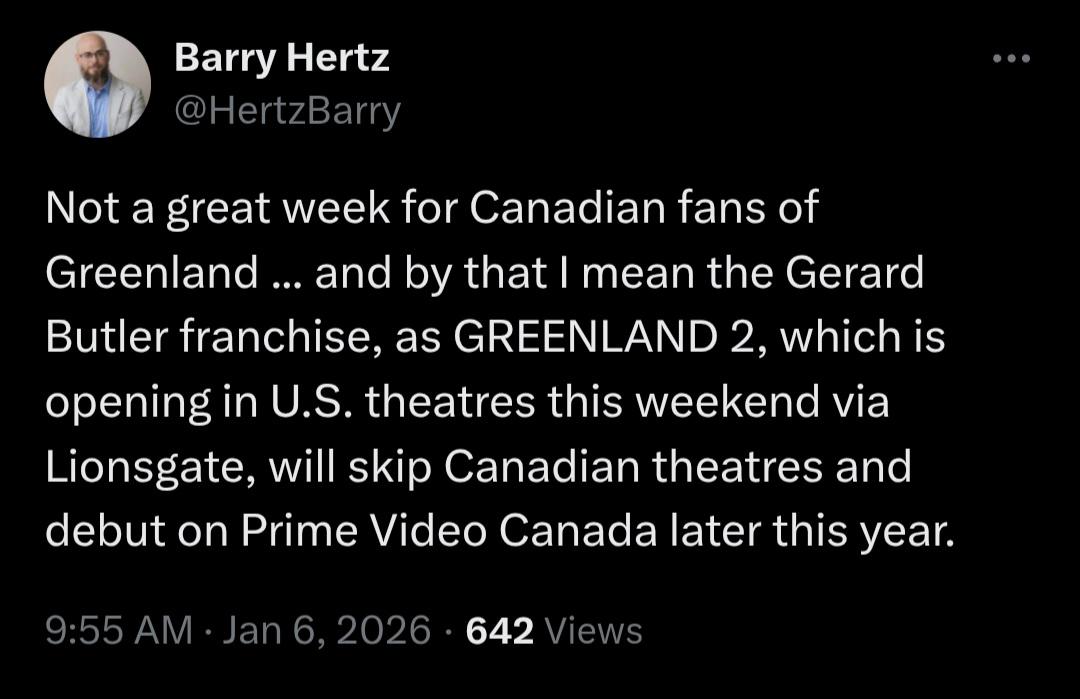 And the reason it’s not getting a theatrical release in Canada is because of Canadian politics involving Trump. Read more here.