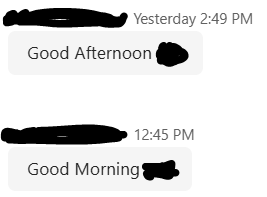 I truly hate this. At work I’ve told everyone that if they just send a “hello” message it will be ignored. I have things to do other then going twenty rounds of “hello” before getting into the actual subject.