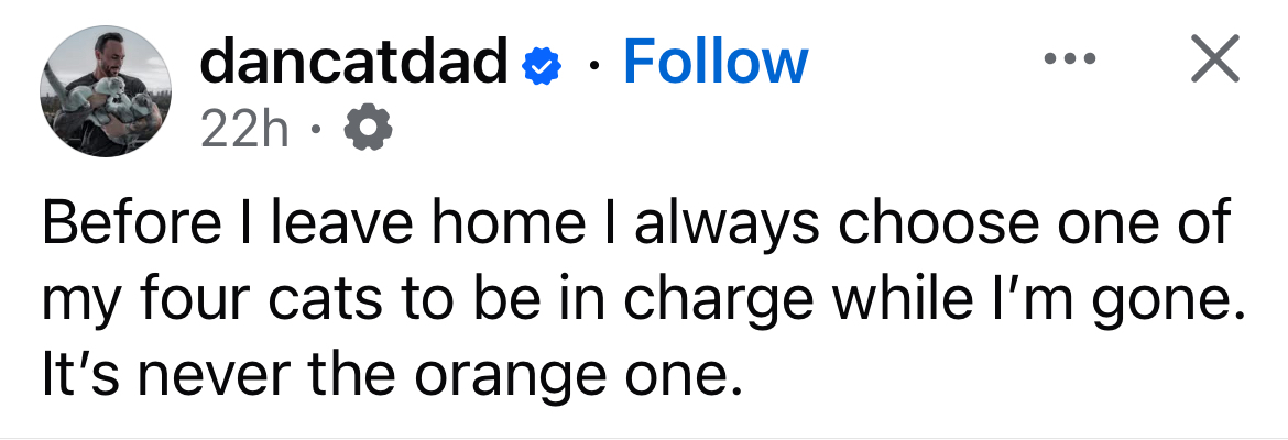Oh he got the good brain cell. Oooor stole one from the dog. Every orange cat I’ve ever known has had the thinking capacity of a warm rock and about as destructive when tossing themselves around.