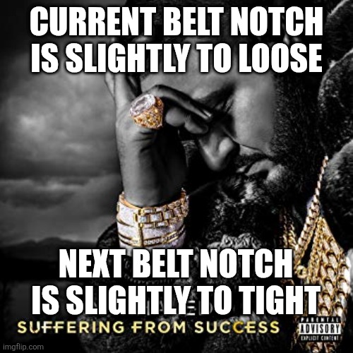 I feel ya. Losing weight and I’m finally at the final notch, which means I have to buy a new belt. Fuck my life.