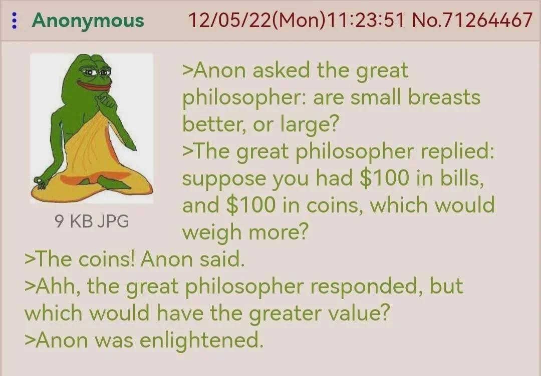 True enlightenment is understanding that $100 in coins serves better as a self-defense tool than $100 in bills.