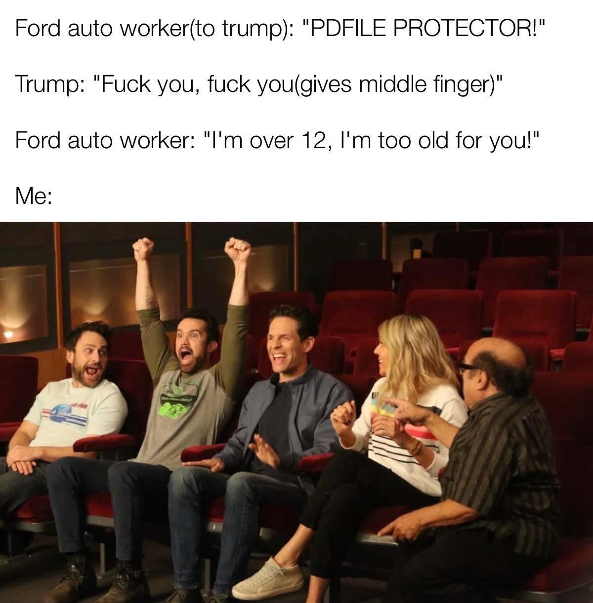 https://truthout.org/articles/ford-plant-suspends-worker-after-trump-flips-him-off/ idk how this guy takes a piss with having such big balls 😮 the video is amazing