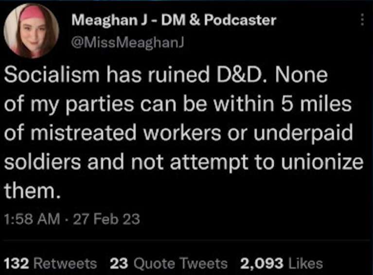 You know what that’s called, right? It’s class consciousness. When people’s power fantasies are union organizing, that implies there is a degree of cultural hegemony going on and that’s pretty neat.