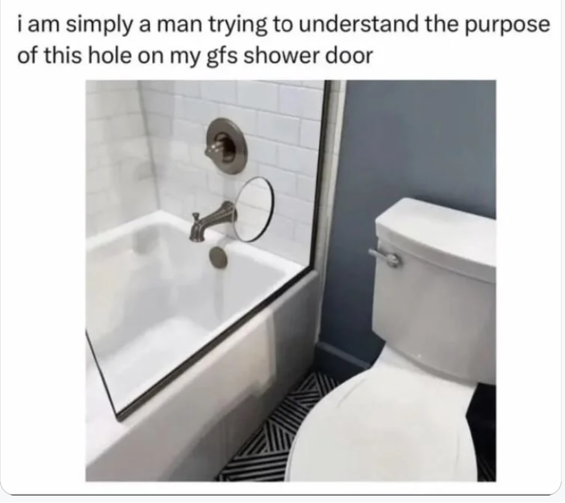 I don’t see how this changes anything. My guess is someone in a wheel chair would use the hand held showerhead more often, which means while maneuvering the shower, it would be possible to accidently spray right out that hole and soak the bathroom.