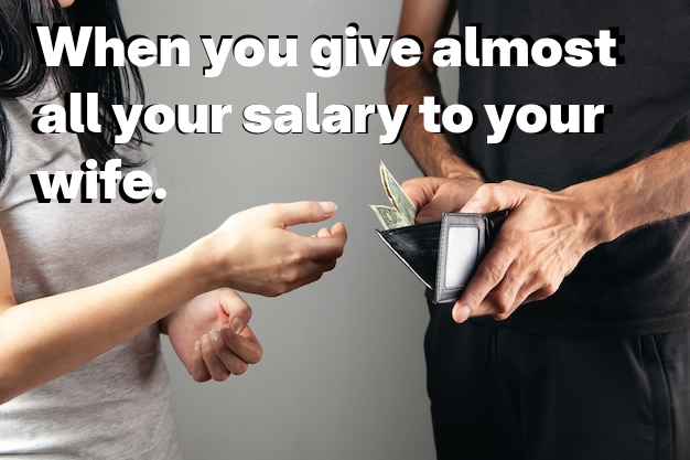 I give 99% of my salary to my wife. She gives me 99% of her salary. We’re a family and we share all expense.