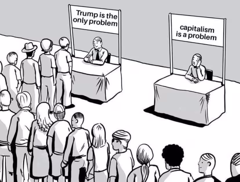 If you think the dismantling of capitalism doesn’t eliminate Trump on its own then I dunno what to tell ya.