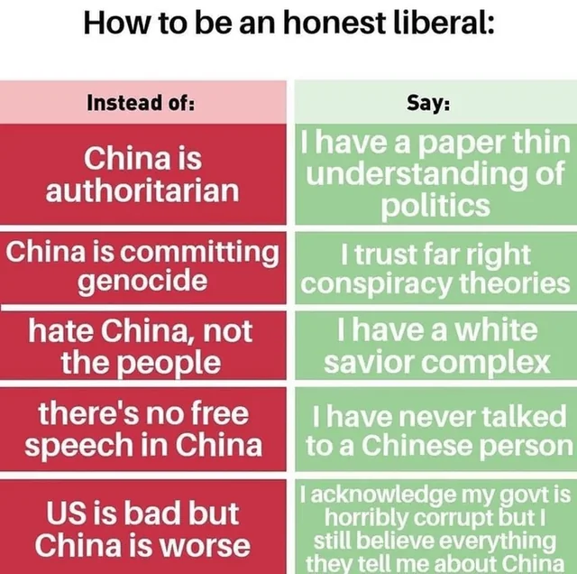 And it shows here when you think about it: how else would you conclude that rejecting those lies is equivalent to saying China is perfect, than if you’re not aware of any other problems China could have beyond what propagandists told you? Assuming you are arguing in good faith that is, which you making straw-mans don’t exactly corroborate ngl.