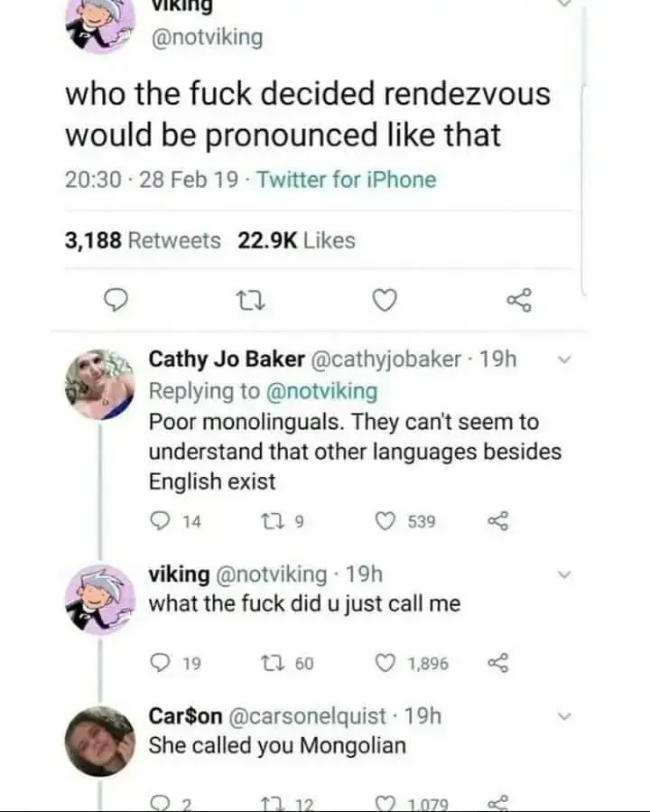 Who the fuck decided rendezvous would be pronounced like that?