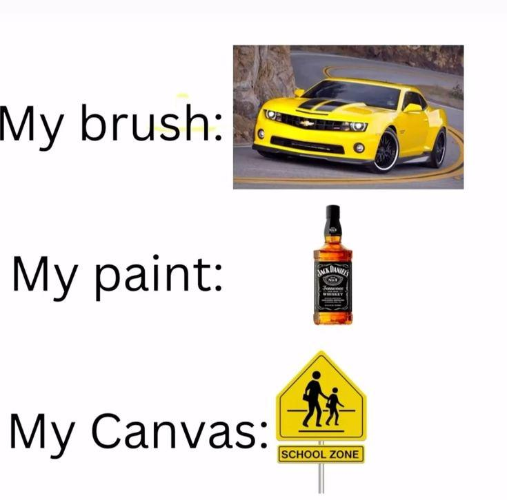 Wouldn’t blood be the paint, and booze the inspiration?
