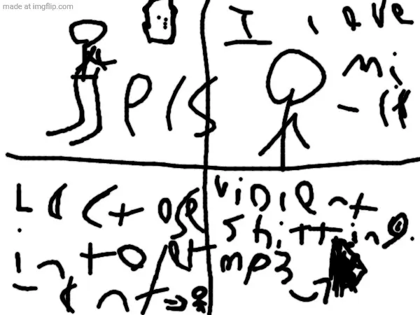 it really just needs stick figures and text to make a funny meme. The text does not even have to be fully comprehendible :D