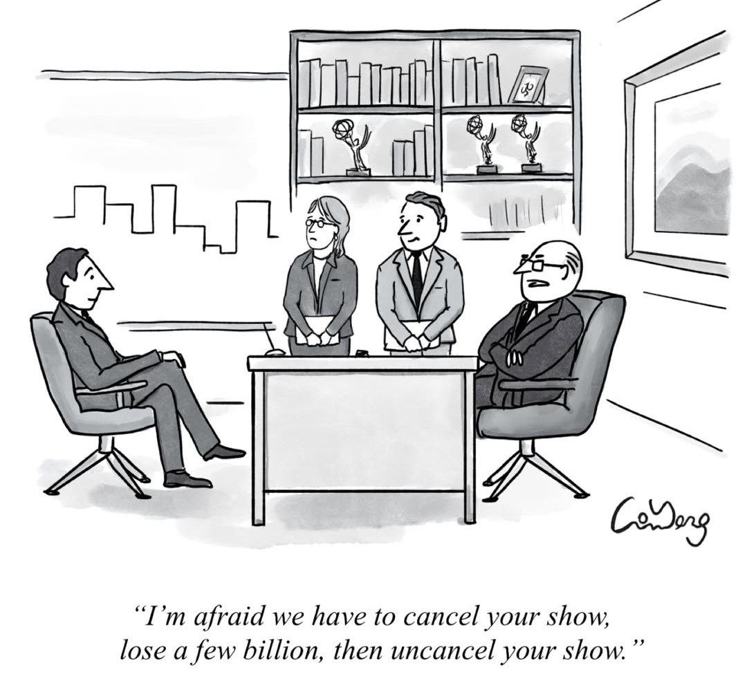 That “lose a few billion” is fake, that’s a stock market decrease, which does recover. People who actually unsubscribe come back when the shows reactivate, mostly.