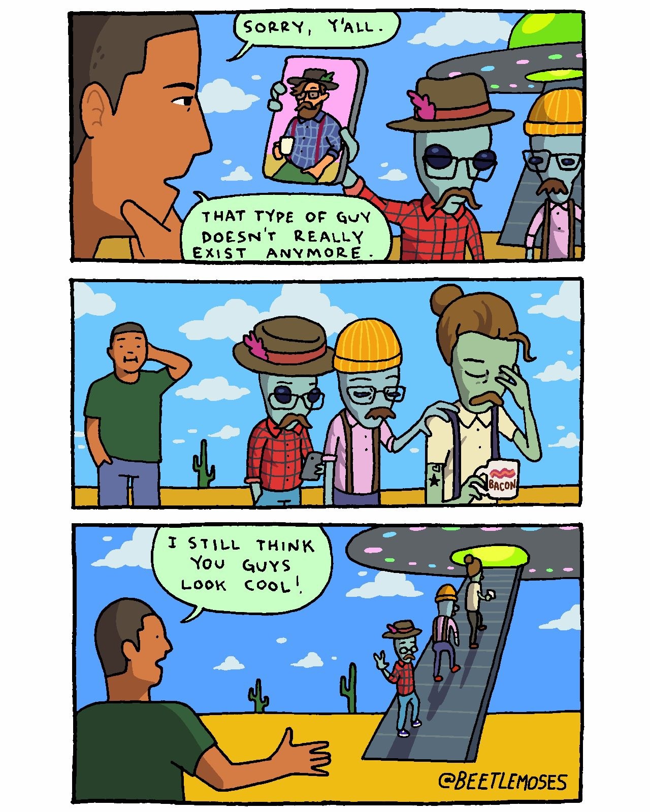 The thing with these fashion trends is that there’s always a percentage of people that never move on. I’m sure that these aliens can find the guys they’re looking for somewhere.