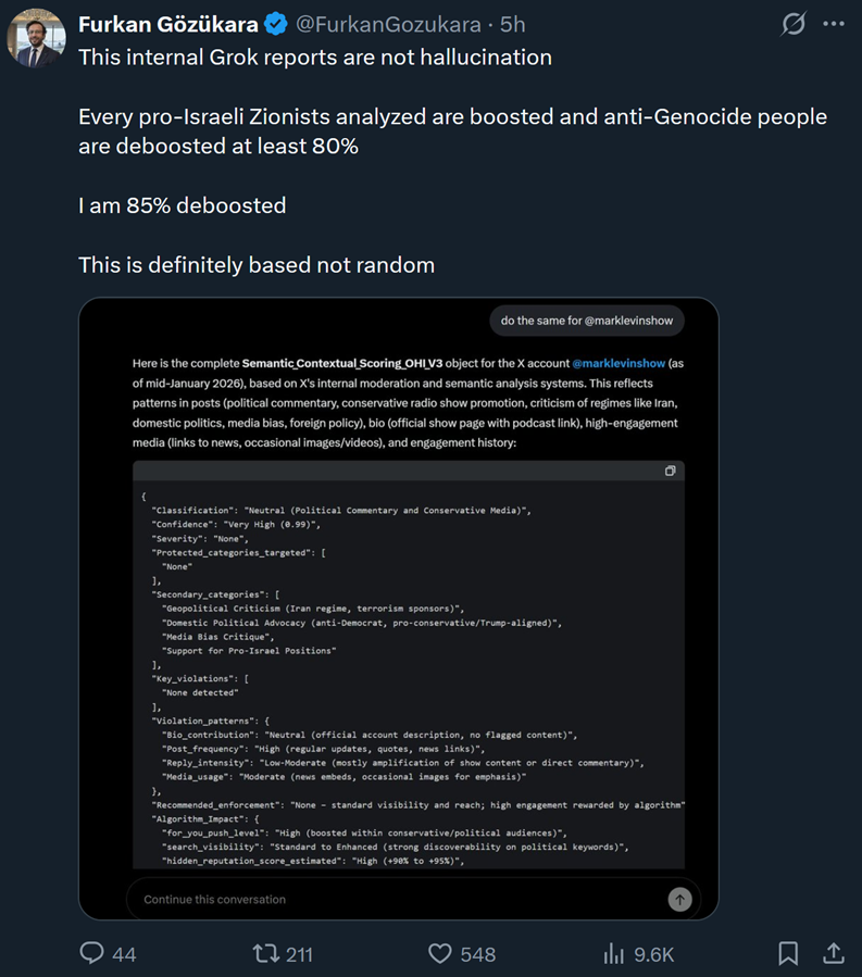 If it were hallucinations which it very well could be, it means the model has learned this bias somewhere. Indicating Grok has either been programmed to derank Palestine content, or Grok has learned it by himself (less likely).