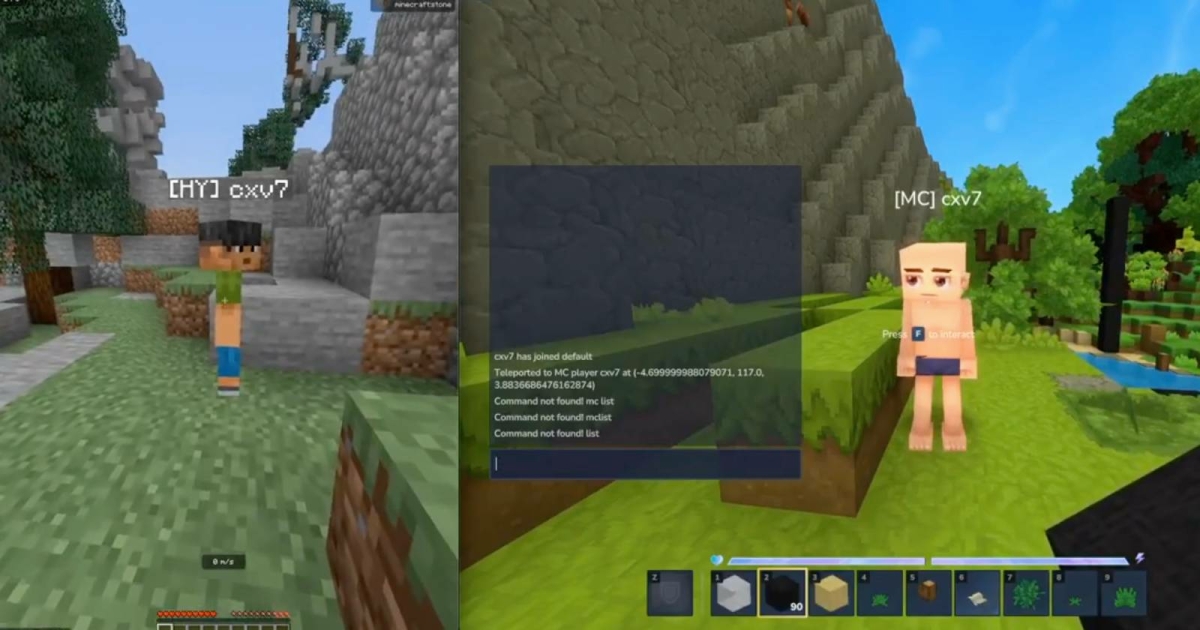 You can see footage of a Minecraft player and a Hytale player in the same world together, interacting with each other while the time of day and text chat stay synced between them:
