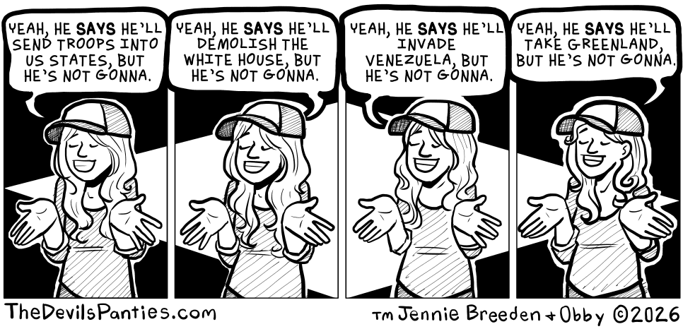 He has backed off of the Greenland stuff. He went to Davos and not only looked stupid in front of the world “elites” but they also told him, “LOL, no Greenland 4 U. Fuck off!” They started cashing in US Treasury bonds, which caused the US dollar to slip and stock markets to go down. Money is the only thing that gets his attention, so he has cooled down on the Greenland talk… for now.