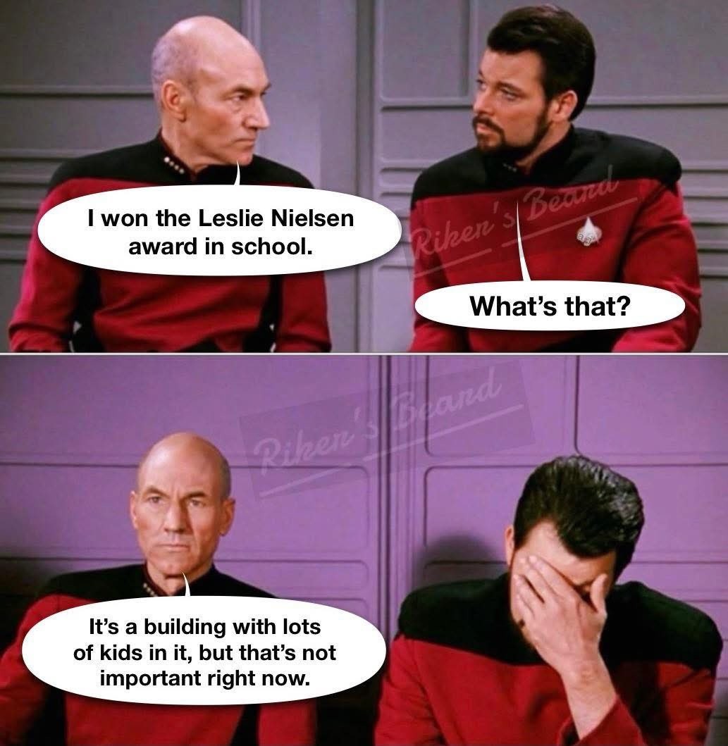 The Picard Maneuver@piefed.world to Dad Jokes@lemmy.worldEnglish · 17 days agoThe Leslie Nielsen Awardmedia.piefed.worldimagemessage-square6fedilinkarrow-up1354