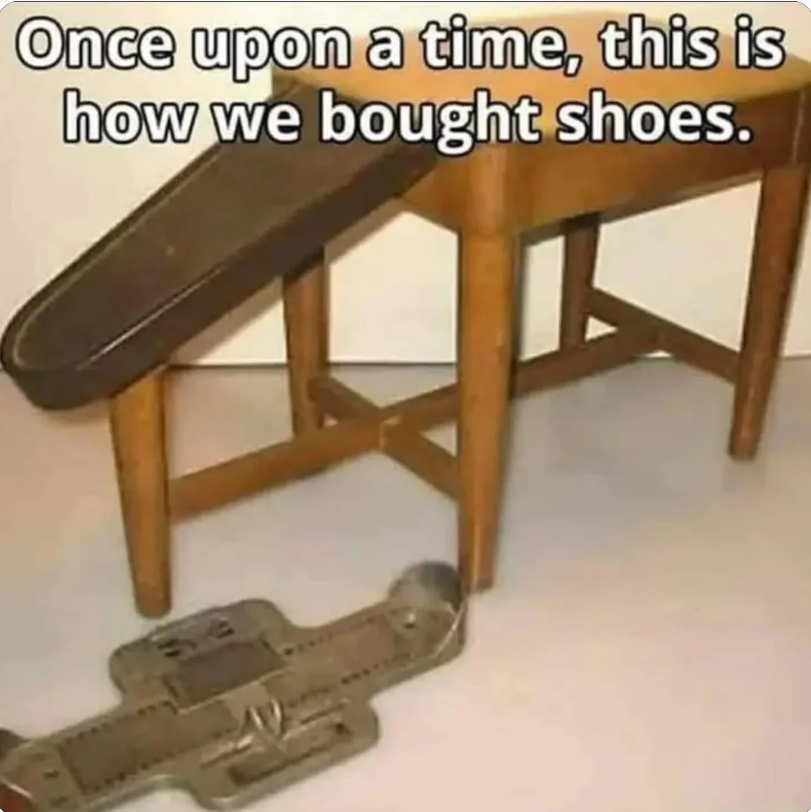 Now we just guess and if we’re wrong we have our slaves in India make us new ones repeat until we realize the brand doesn’t make shoes that fit. try a new brand send them back because we had our heart set on the other ones so we just use one of our other 50 pairs, glad we moved past that archaic machine.
