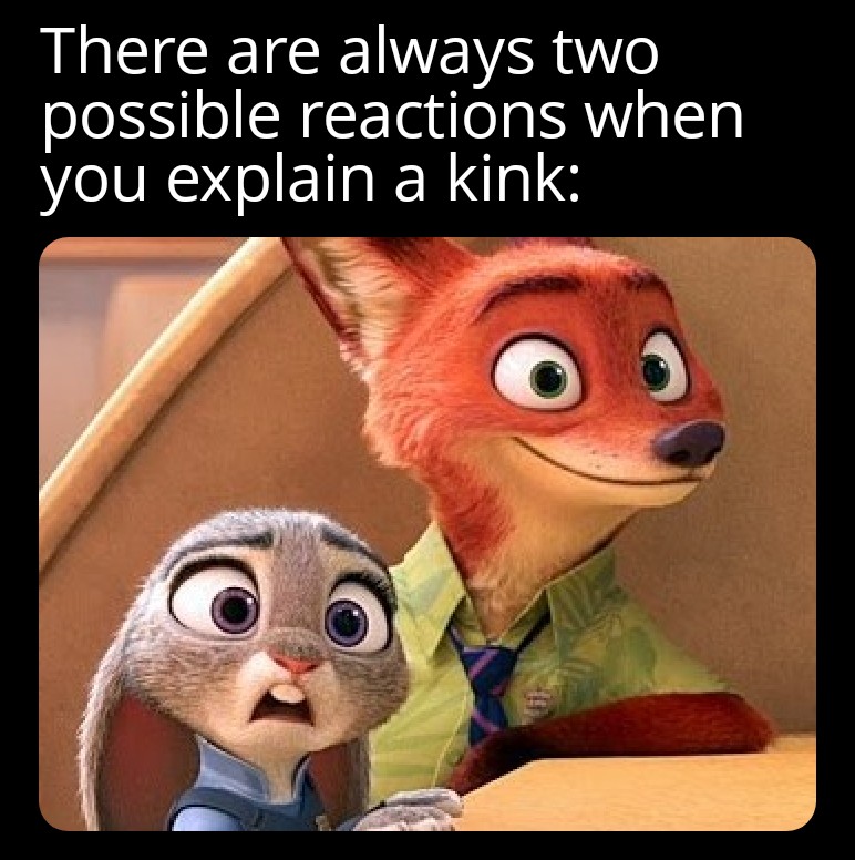 ikr, watched it with a group of people in the movies and when we went outside ive proclaimed “nick wilde ass is sure made to be inflated” i mean i wasnt super serious, even laughed a bit, they just looked at me dead silent and made it super awkward. they also do not answer my text.