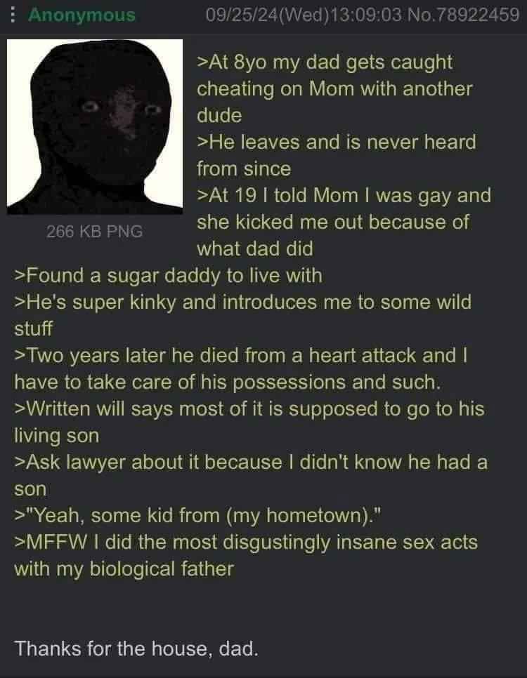 also, why do you assume they didn’t want to have a beautiful incestuous gayby, gestated by their daughter/sister who ended up in foster care after the initial divorce to whom both had an immediate and strange attraction when they met her at the gay bar?