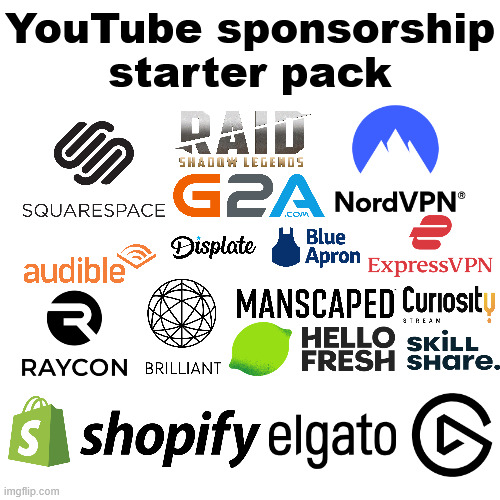 arrow-up1310imageYouTube sponsorship starter packlemmy.mlcm0002@lemmy.cafe to Memes@sopuli.xyzEnglish · 10 days agomessage-square83fedilinkcross-posted to: memes@lemmy.ml
