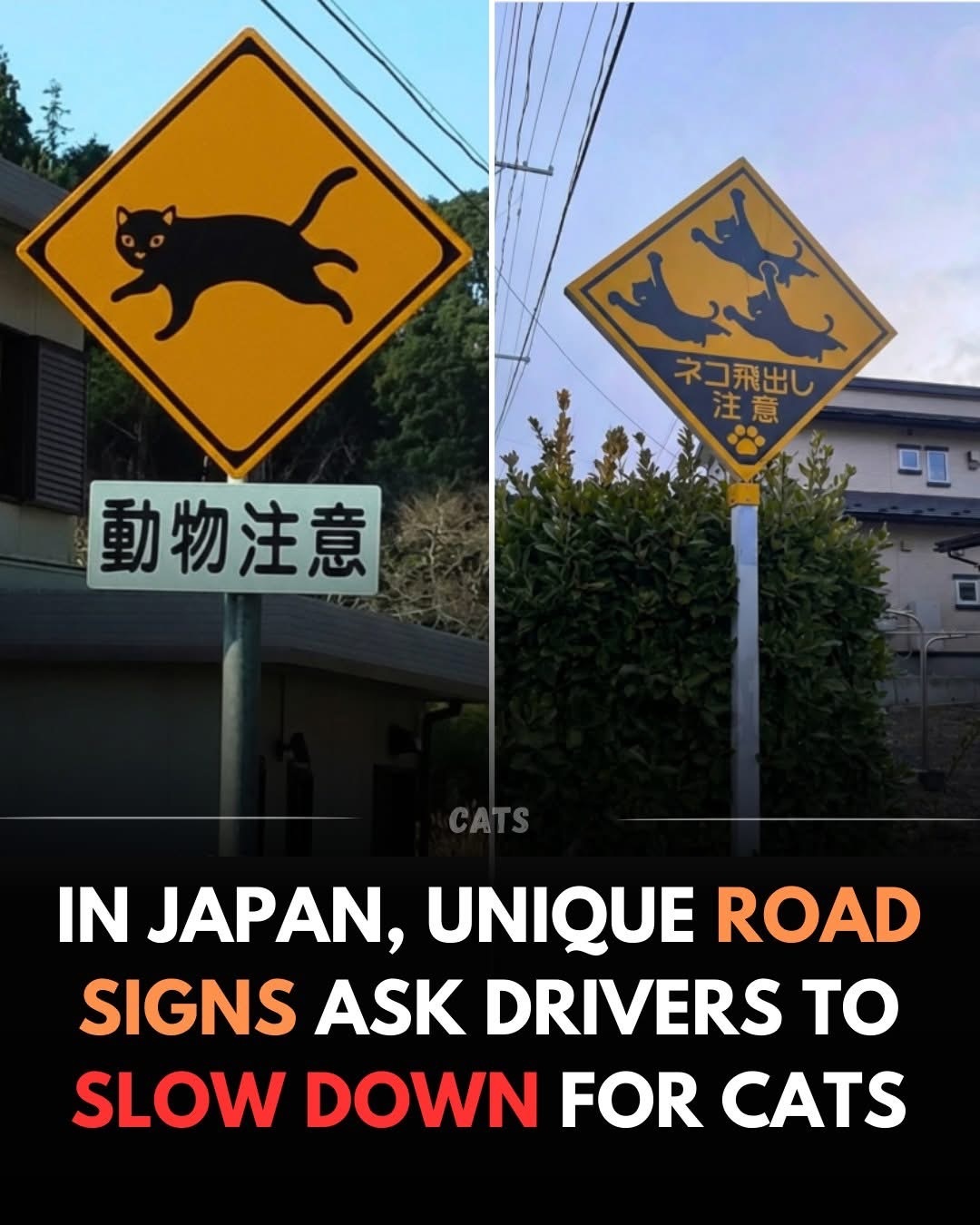 Many things the internet will tell you exist in Japan are still not the norm around here. I’ve been here a decade and have come across traffic warning signs for deer, cattle, tanuki (raccoon dogs) and in the mountains for bears, never for cats. So these are irregular signs. The one on the left strikes me as one given special dispensation for by the authorities to prevent accidents on a public road, maybe even in just one village that’s overrun with ferrals. The writing underneath just reads look out for animals. The one on the right looks to me like it could just be on private property somewhere.