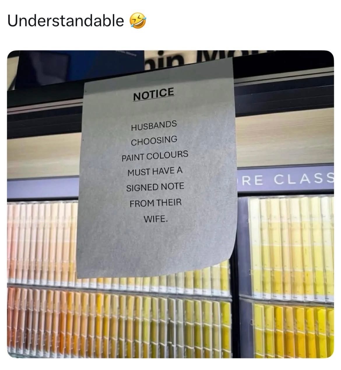 Wives choosing (insert tools here) must have a signed note from their husband"