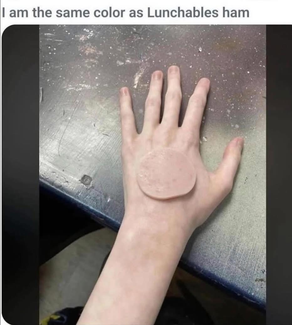 That’s becsuse Lunchables ham is actually made from white kids. Turkey, too, but the turkey is specifically white kids that never see sunlight.
