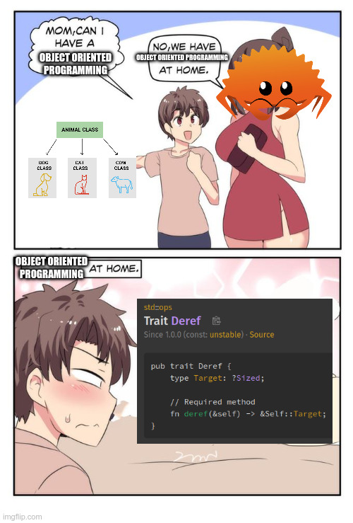 freddo@feddit.nu to Programmer Humor@programming.devEnglish · 3 hours agoOOP at home:feddit.nuimagemessage-square15fedilinkarrow-up169