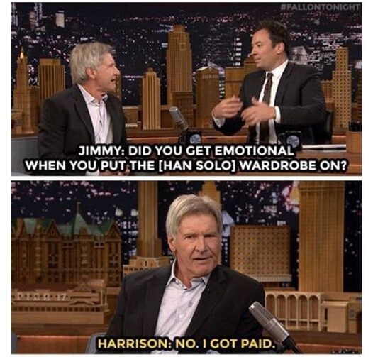 Man, fuck Harrison Ford. I have no idea why he has such contempt for the two roles that put him on the map, especially when they’re two of the most beloved characters in cinematic history.