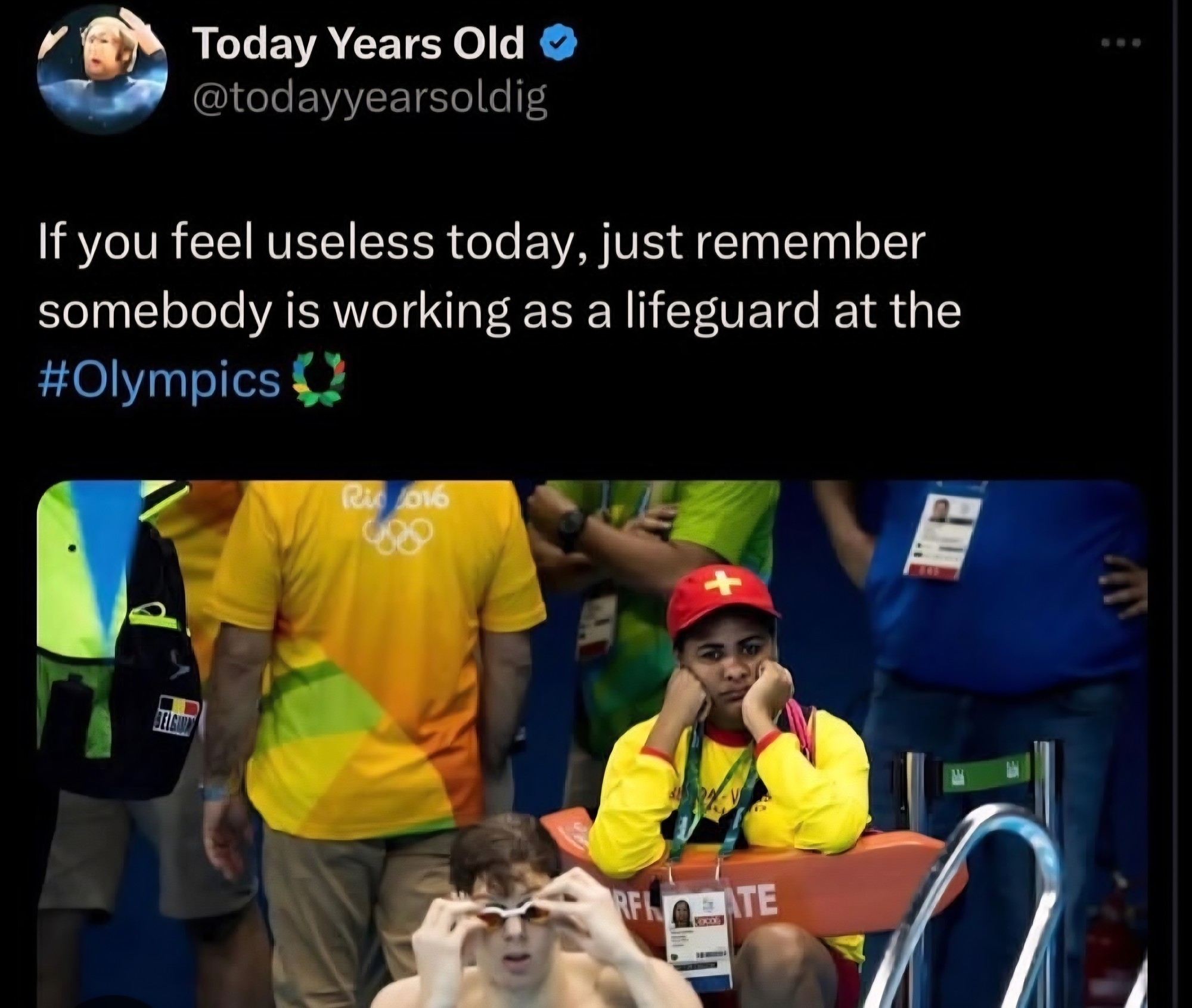 On the off chance a lifeguard is needed, we’ll finally get to see the whole Olympian vs normal person comparison.