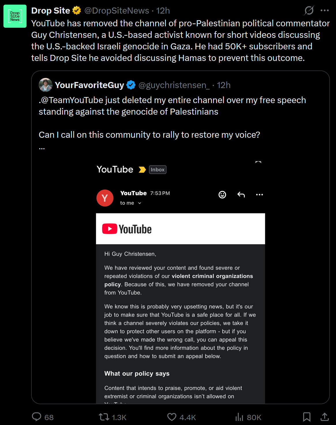 His mistake was building his following on centralized commercialized platforms.