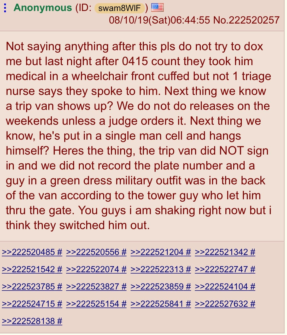 FBI subpoenaed 4 4chan records created within minutes/ hours of the reported time of Epstein's death.