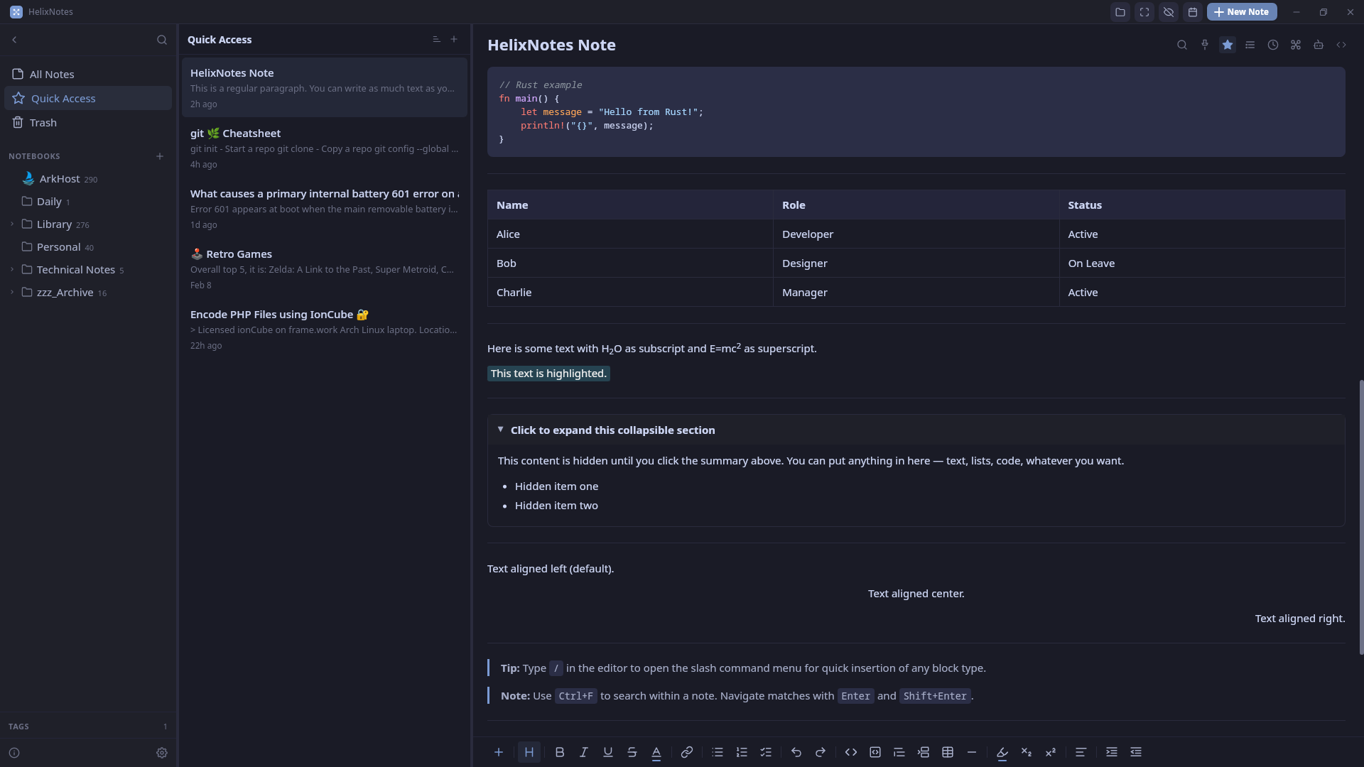 Available for Linux (AppImage, APT, AUR), Windows, and macOS. Source: https://codeberg.org/ArkHost/HelixNotes