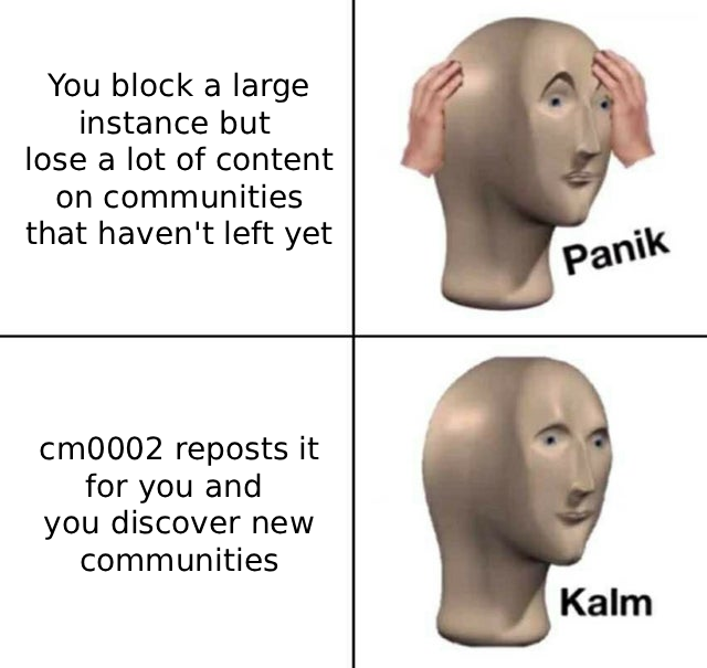 Weird. I wouldn’t have expected that. But yes, according to their megathread in the sister comment, about 5 on my blocklist are unaccounted for.