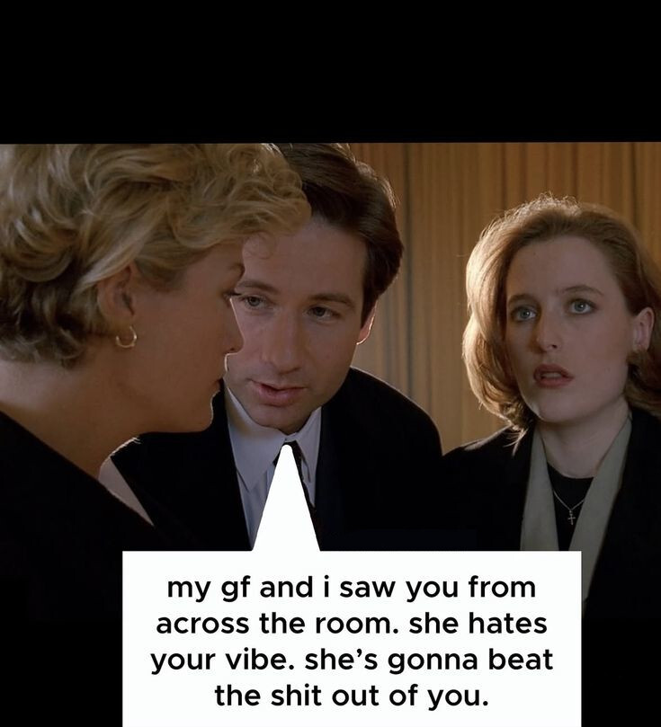 Yeah, but, like, could you imagine getting your ass kicked by Gillian Anderson? That would be hot as fuck.
