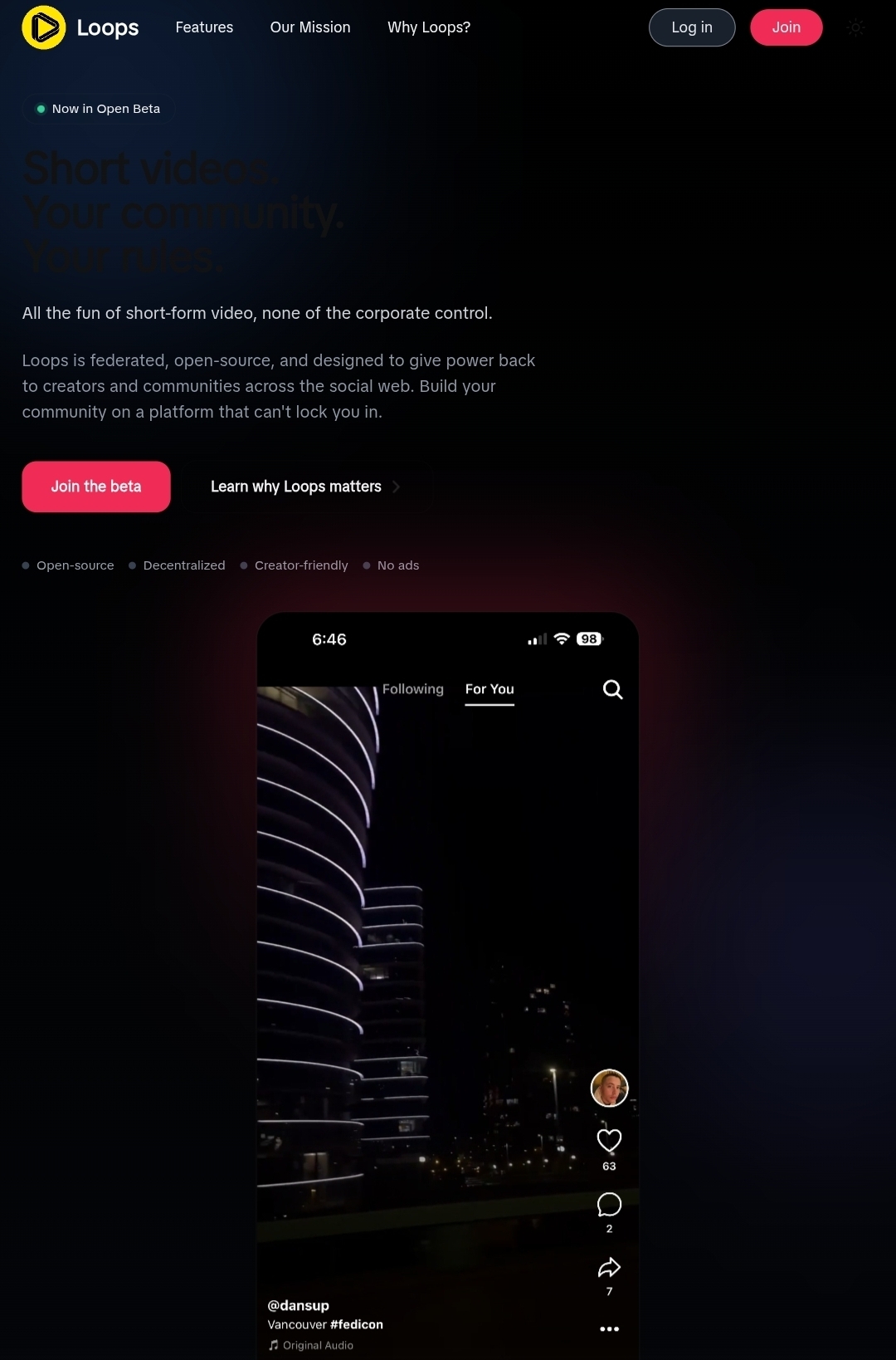 There is an app both for apple and android. Just scroll down the page a bit: https://joinloops.org/join-the-beta