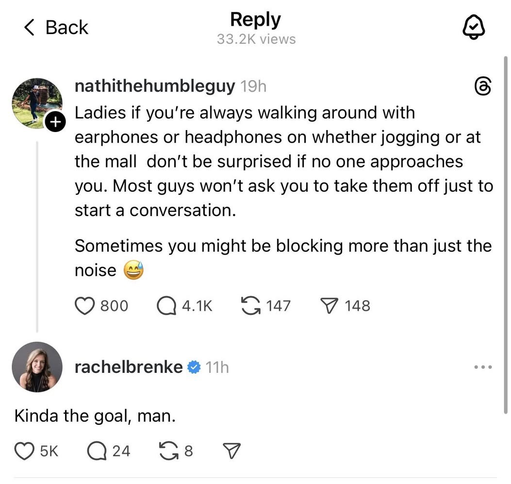 This whole thread is weird to me because being approached in public by people wanting to talk almost never happens. Not that I’m complaining exactly, it’s confusing and concerning when it does, but it’s hard to imagine it as such a normal thing that it has become a commonplace annoyance.