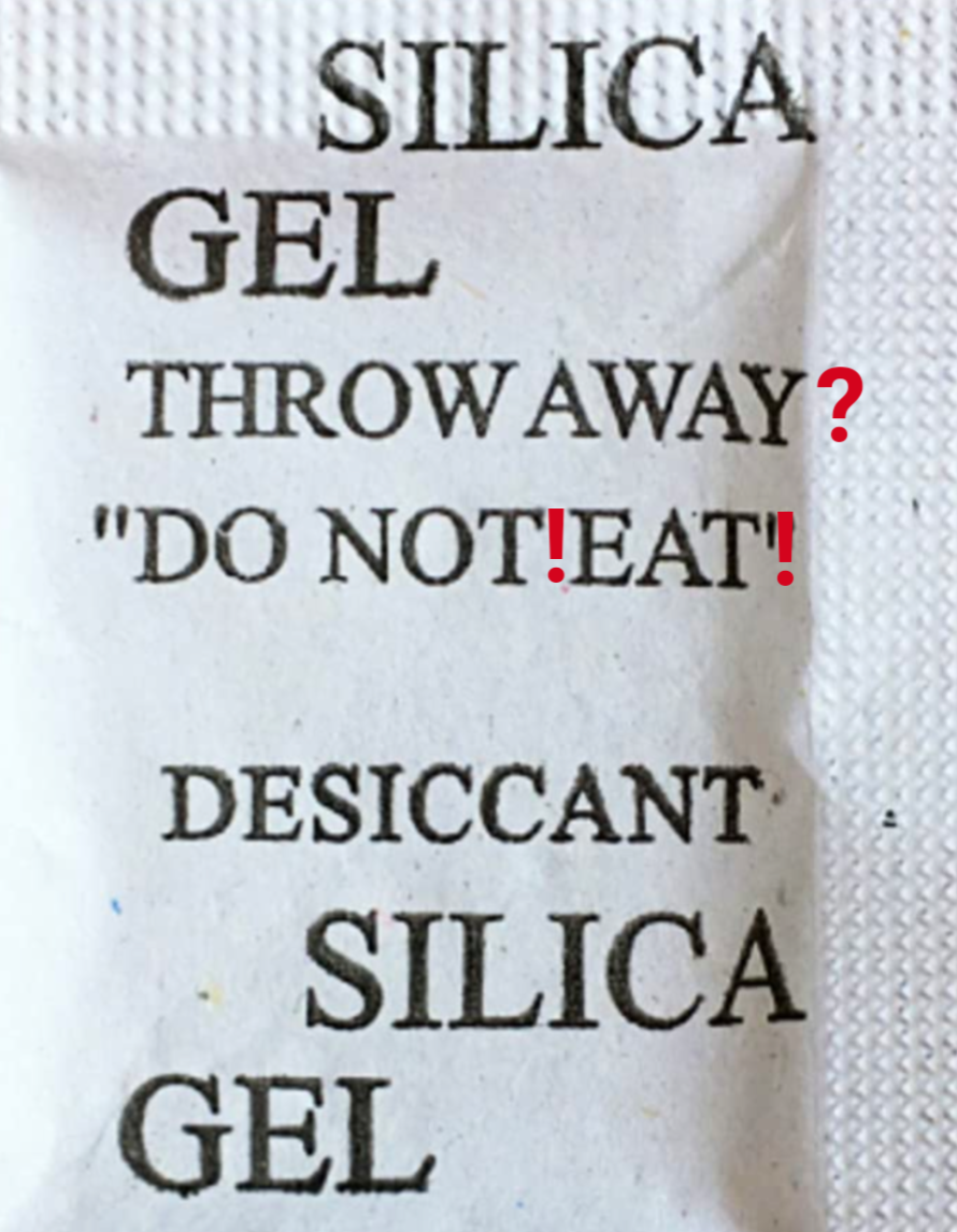 Am I the only one mildly annoyed by the fact that “Do not eat” is in quotations, like it’s silica gel’s motto or something?